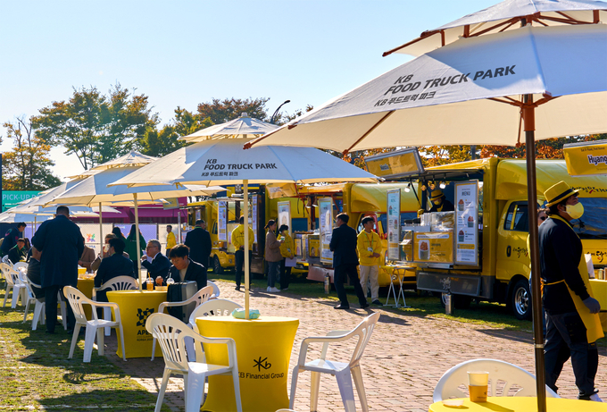 KB금융은 29일부터 31일까지 3일간, ‘APEC CEO 서밋’ 현장에서 한국의 음식 문화를 경험할 수 있는 K-푸드 체험존인 ‘KB 푸드트럭 파크’와 KB국민은행의 이동점포를 활용한 ‘KB 환전 버스’를 운영한다.