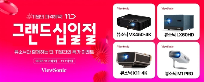 이번 행사는 11월 1일(토)부터 11일(화)까지 단 11일간 진행되며, 뷰소닉 제품을 대상으로 10% 할인 혜택이 제공된다.