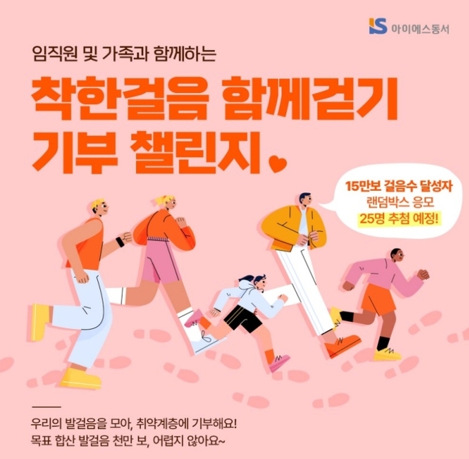 [FETV=박원일 기자] 아이에스동서는 임직원 참여형 사회공헌 활동인 '착한 걸음 함께 걷기' 기부 챌린지를 통해 기부금 1000만원을 조성했다고 3일 밝혔다.