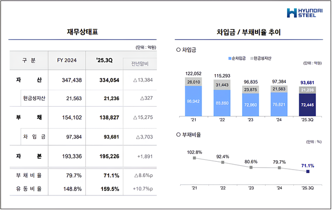 결국 현대제철은 공급조정에 대비해 고부가 가치 중심의 수익성 개선과 차입금 감소 등 투자절제 중심의 방어 전략 속에서 회복 국면을 모색하고 있는 것으로 보인다. 단기적으로는 수입 재고 소진과 내수 수요 유지, 주요 제품 가격 인상에 초점을 두고 있으며 중장기적으로는 탄소중립 대응과 고부가 제품 경쟁력 강화를 통해 다음 경기 사이클에 대비하고 있다는 평가다.