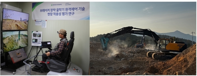 실증에 투입된 원격제어 굴착기는 내륙의 원격조종실에서 실시간으로 장비를 조종이 가능하며 360도 어라운드뷰 카메라·접근 감지 레이더 센서·안전 경고등 등 첨단 안전장치가 탑재되어 있다.
