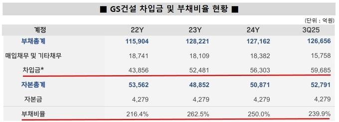 재무 구조 또한 개선세를 보였다. 부채비율은 지난해 말 250%에서 3분기 말 현재 239.9%로 낮아졌다. 다만 차입금 증가세가 여전해 부채비율의 추가적인 하향 안정화에는 시간이 좀 더 걸릴 전망이다. 회사 측은 자회사 GS이니마 매각이 완료되면 추가 개선이 기대된다고 밝혔다.