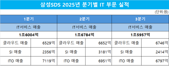 분기별 상승률로 보면 1분기에서 2분기로 1.9%, 2분기에서 3분기로 1.4% 증가한 셈이다. 삼성SDS의 클라우드 매출은 2025년 들어 모든 분기에서 전년 대비 두 자릿수 성장률을 기록하며 안정적인 증가 흐름을 유지하고 있다.