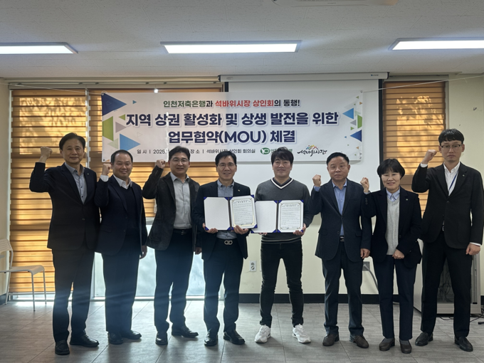 김관배 인천저축은행 대표는 “이번 협약은 지역과 함께 성장하는 인천저축은행의 경영이념을 실천하는 뜻깊은 자리”라며 “석바위시장을 비롯한 지역 상권의 활력 회복을 위해 지속 가능한 금융지원과 상생활동을 이어가겠다”고 말했다.