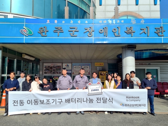 [FETV=나연지 기자] 한국앤컴퍼니그룹(회장 조현범)의 사업형 지주회사 한국앤컴퍼니㈜는 지난 6일 대전광역시 서구 한밭장애인자립생활센터와 전라북도 완주군 완주군장애인복지관에서 ‘전동이동보조기기 배터리 나눔’ 전달식을 열고, 전동이동보조기기용 배터리 300개를 지원했다.