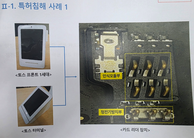 [FETV=임종현 기자] "토스 단말기 토스 터미널과 프론트 1·2세대 제품을 확보해 분해한 결과 자사 특허 도면에 나온 구조와 거의 동일했다. 기술을 잘 모르는 사람이 봐도 한눈에 같다고 느낄 정도다."