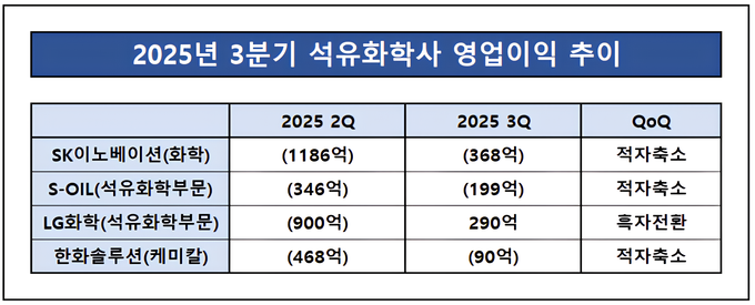 결국 이번 3분기 석화사들의 실적은 유가 하락과 원가 낙수효과에 따른 일시적 회복이라는 평가가 우세하다. 시장은 정유·석화 시장이 같은 방향으로 움직이며 잠시 숨통은 트였지만 공급과잉 구조가 근본적으로 해소되지 않는 한 완전한 반등은 어렵다는 평가다.