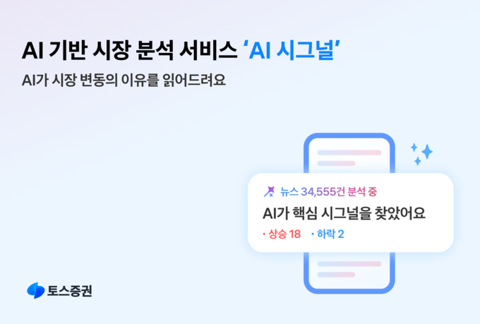 [FETV=이건혁 기자] 토스증권(대표 김규빈)은 인공지능(AI) 기술을 활용한 시장 분석 서비스 ‘AI 시그널’을 출시했다고 밝혔다. 토스증권은 이 서비스를 통해 범람하는 투자 정보 속에서 개인투자자들이 높은 수준의 정보 접근성과 시장 이해력을 갖출 수 있도록 돕는다는 계획이다.