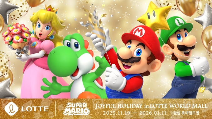 롯데는 오는 11월 19일부터 2026년 1월 11일까지 잠실 롯데월드몰에서 세계적인 콘솔 게임 기업 닌텐도 주식회사와 대형 오프라인 행사 ‘JOYFUL HOLIDAY in LOTTE WORLD MALL’을 국내 최초로 개최한다. 이번 행사는 다양한 세대에게 사랑받는 「슈퍼 마리오」에 등장하는 캐릭터를 테마로 롯데백화점을 필두로 롯데그룹 5개 계열사가 유통, 식음료, 패션, 온라인 등 모든 역량을 총동원하여 월드몰 전역을 축제의 장으로 만든다.