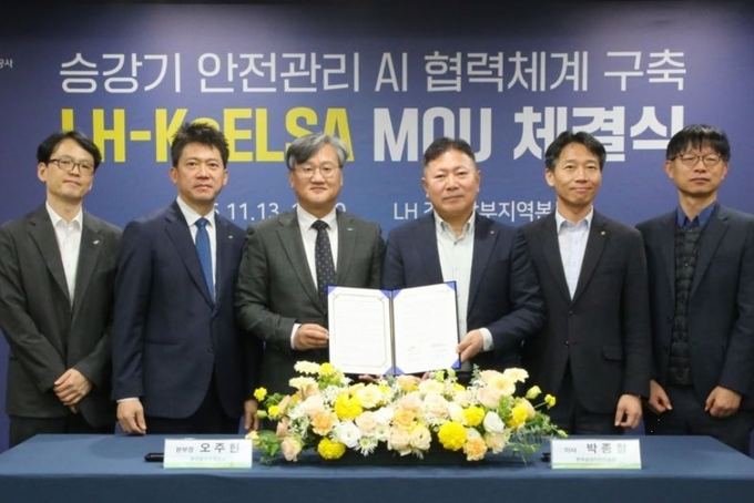 [FETV=박원일 기자] 한국토지주택공사(LH)는 13일 경기도 수원시 LH 경기남부지역본부에서 한국승강기안전공단(KoELSA)과 AI 기술을 활용한 승강기 안전관리 협력체계 구축을 위한 업무협약을 체결했다고 13일 밝혔다.