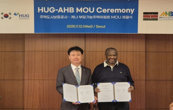 [FETV=박원일 기자] 주택도시보증공사(HUG)가 케냐 부담가능주택위원회(AHB)와 한국의 주택분양보증제도를 전수하기 위한 양해각서(MOU)를 체결했다고 13일 밝혔다. 이번 협약은 AHB가 해외 기관과 맺은 첫 공식 협력으로 한국의 주택금융 운영 경험이 케냐 부담가능주택 정책에 활용될 전망이다.