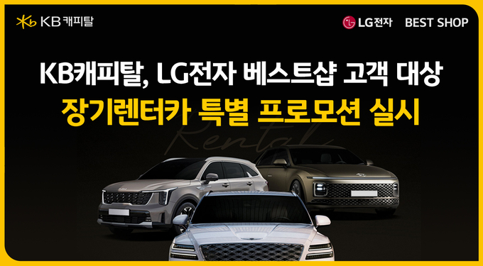 [FETV=임종현 기자] KB캐피탈이 LG전자의 가전제품 전문 유통 매장인 LG전자 베스트샵과 함께 장기렌터카 제휴 프로모션을 진행한다고 14일 밝혔다.