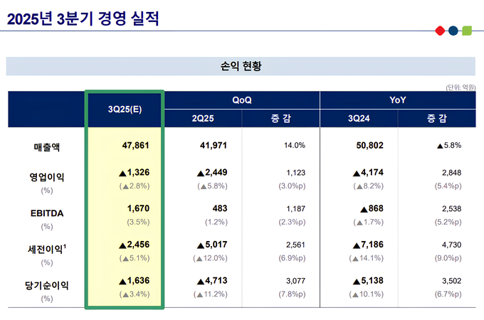 롯데케미칼의 실적 역시 앞서 언급한 공급과잉 영향이 강하게 나타나고 있다. 롯데케미칼은 올해 3분기 연결기준 매출 4조7861억원 영업손실 1326억원을 기록했다. 일회성 비용 감소·원료가 하락에 따라 적자 폭이 전분기 대비 축소됐으나 공급과잉이라는 구조적 문제로 본격적인 반등 국면에는 들어서지 못한 상태다.
