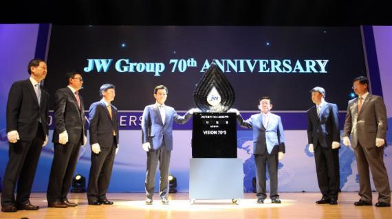 JW그룹은 조선중외제약소를 설립한 1945년부터 서울 동작구 신대방동에 본사 사옥을 신축해 이전한 1986년까지를 ‘창업과 도약’의 시기로 정의한다. 이후 1987년부터 2001년까지를 ‘성장과 혁신’, 2002년부터 2024년까지를 ‘변화와 전진’으로 구분한다.