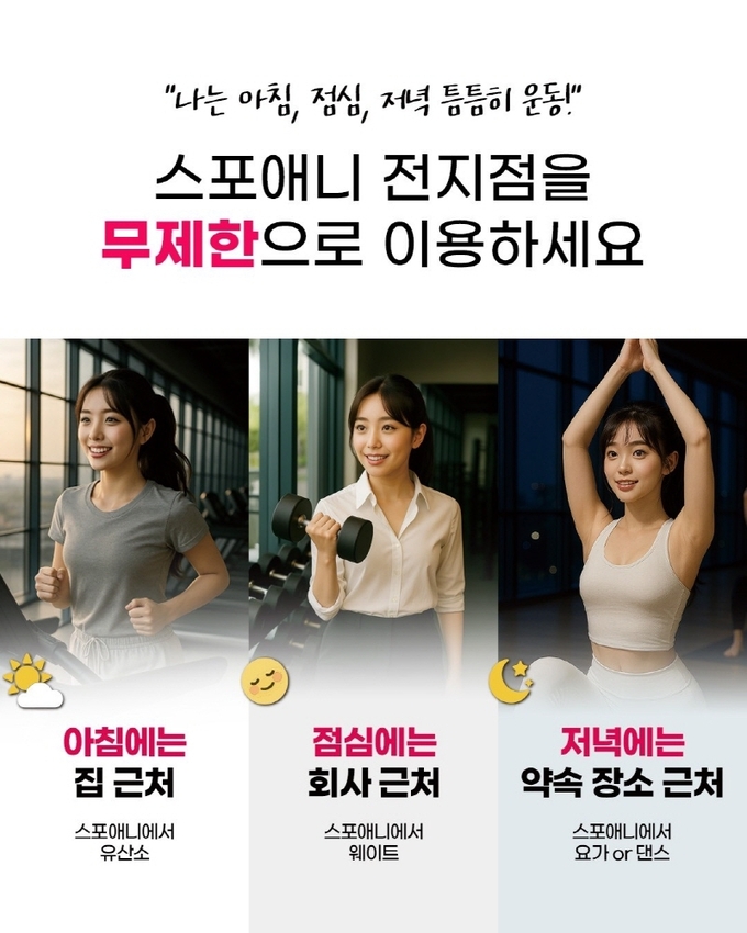 서예은 파트장은 “회원의 운동 여정 전체를 이해하고, 각자 다른 삶의 패턴에 맞춘 상품을 제공하는 것이 브랜드의 새로운 임무”라며 “스포애니만의 특별 회원권은 그 첫 번째 신호탄이 될 것”이라고 밝혔다.