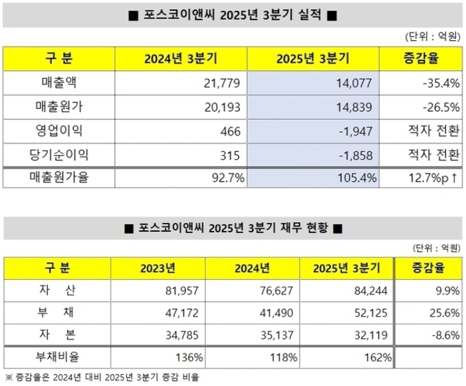 회사는 2025년 2분기에 이어 두 분기 연속 영업손실을 기록했으며 4분기에도 약 2300억원의 추가손실액 발생 여지도 있어 연간 손실 규모는 확대될 전망이다.