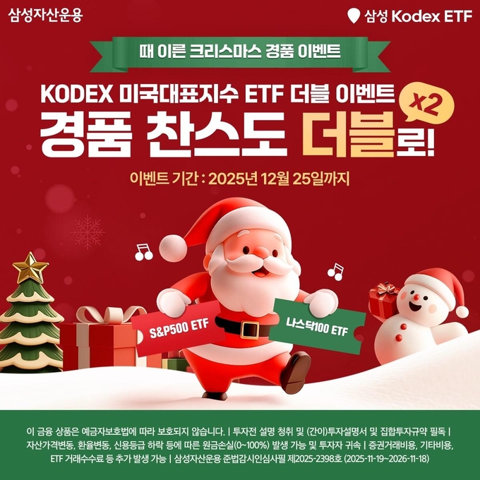 [FETV=이건혁 기자] 삼성자산운용은 오는 12월25일까지 ‘때 이른 크리스마스 경품 이벤트’를 진행한다고 22일 밝혔다.