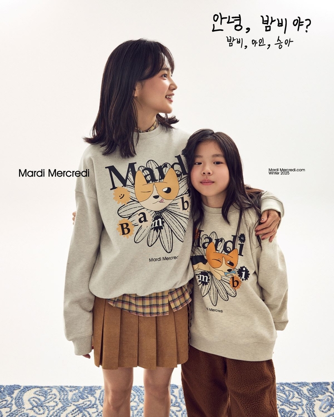 브랜드의 시그니처인 플라워 마르디 그래픽에 아인이 직접 그린 밤비 일러스트를 더한 ‘안녕! 밤비야’ 스웻셔츠는 여유로운 실루엣으로 누구나 편안하게 착용할 수 있으며, 밤비의 이름을 재치 있게 표현한 그래픽 또한 눈길을 끈다. 스웻셔츠는 우먼부터 주니어, 키즈 라인까지 다양한 사이즈로 준비되어 있다.