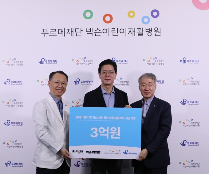올해 기부금은 넥슨 창립 30주년 캠페인 ‘넥슨 히어로’를 통해 조성됐으며 유아~청소년 대상 보행 재활로봇 ‘워크봇 G’ 도입에 사용될 예정이다.