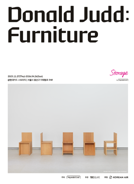 Donald Judd: Furniture는 도널드 저드의 가구를 중심으로 한 국내 첫 전시이자 지금까지 국내에서 열린 전시 중 최대 규모로 그가 나무·금속·합판으로 디자인한 가구를 주제로 한 전시다. 이달 27일부터 내년 4월26일까지 서울 이태원에 위치한 전시·문화 공간 현대카드 스토리지(Hyundai Card Storage)에서 열리는 이번 전시에서는 도널드 저드의 가구를 비롯해 저드 재단(Judd Foundation)의 판화 및 드로잉 소장품 등 약 100여 점의 작품이 공개될 예정이다.