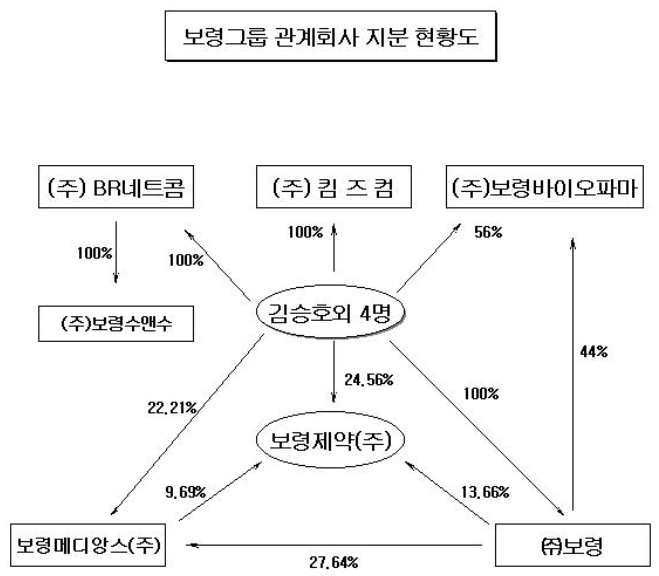 주력 계열사 보령의 사업보고서를 살펴보면 1998년 김승호 명예회장의 지분은 0.14%에 불과했다. 나머지는 부인이 3.24%, 김은선 회장이 8.4%, 김은영 씨가 5.17%, 김은정 회장이 5.17%, 김은희 씨가 5.17%를 보유하고 있다.