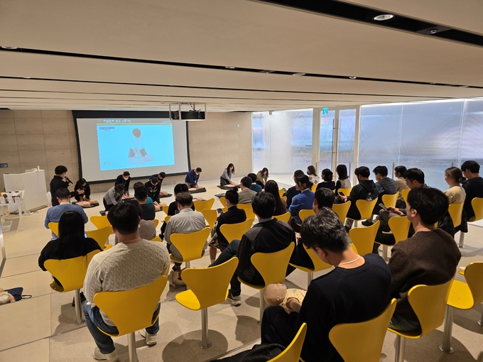 참가자들은 ▲응급환자 발생 시 대처요령 ▲심폐소생술(CPR) 방법 ▲자동심장충격기(AED) 사용법 ▲응급처치 시 주의사항 등 이론을 학습한 뒤, 마네킹과 AED 장비를 이용해 성인·영아 등 연령대별 CPR 실습을 진행했다.