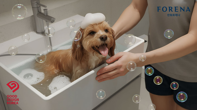 올해 ‘2025 굿 디자인 어워드’ 에서 수상한 ‘반려동물 세정대’는 반려동물과 사람이 모두 편리하게 사용할 수 있도록 개발된 멀티 세정대다. ‘중간 디바이더 판넬’을 활용해 세정대 깊이를 상황에 맞게 조절할 수 있도록 사용 효율을 높였으며 판넬 뒷면은 빨래판으로도 활용할 수 있는 구조로 실용성을 강화하였다.