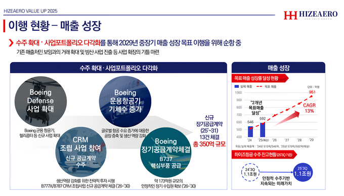 하이즈항공은 올해 이후 계획으로 ▲CAGR(연평균 성장률) 13% 달성 ▲부채비율 120% 수준으로 하향 ▲IR 30회로 확대 등을 제시했다. 주요 생산거점 자동·효율화와 북미 지역 사업 확장 전략이 맞물리며 향후 목표 달성에 성공할 수 있을지 시장의 관심이 집중되고 있다.