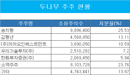 또 소액주주들의 선택도 이번 합병에 있어서 변수다. 두나무 소액주주 지분은 약 812만주로 전체 주주 총수의 23.76%에 달하며 주식매수청구권 행사 가격이 주당 약 43만9000원으로 최근 장외가인 35만원대보다 높아 합병에 반대하고 고가에 현금화하려는 유인이 매우 클 수 있다.
