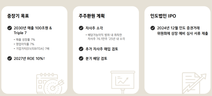 LG전자가 제시한 중기 목표는 2027년 ROE 10% 이상, 2030년 매출 100조원과 ‘Triple 7’(매출 성장률 7%, 영업이익률 7%, EV/EBITDA 7배)이다.