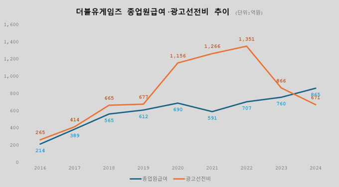 반면 인건비는 지속적으로 상승했다. 2020년 690억원에서 2021년 일시적으로 590억원까지 감소했지만 2022년 다시 700억원으로 증가했고 2023년 760억원, 2024년 865억원을 기록하며 4년간 25%가량 올랐다.