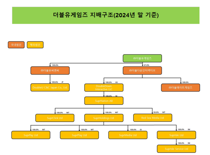 즉 '김가람 대표→더블유게임즈→DDI→미국 현지 법인들'이라는 수직적인 지배구조가 형성돼 있는 셈이다.