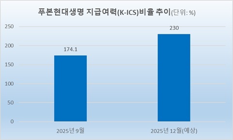 푸본현대생명은 유상증자에 따라 올해 12월 말 기준 경과조치 후 K-ICS비율이 230% 이상을 기록할 것으로 예상하고 있다.
