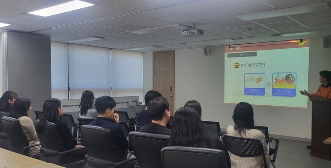 이번 집체교육은 분당소방서 소방대원 초청 강의로 진행돼 화재 발생에 대한 위험 단계별 소화 조치 방법과 대피 요령 등 상황 별 행동 매뉴얼 교육으로 진행했다. 위험상황에 대한 영상 교육을 통해 JT저축은행 임직원들은 회사에서 발생할 수 있는 위험 요소에 대한 점검과 소화기와 소화전 등 기초 소방시설 사용 및 대피 시 올바른 조치 방법 등에 대해서도 교육을 진행했다.