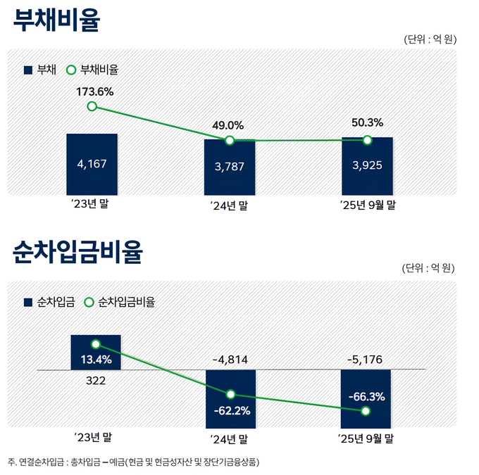 재무 구조도 안정적이다. HD현대마린솔루션의 부채비율은 2023년 말 173.6%에서 올해 3분기 50.3%로 크게 낮아졌다. 순차입금 역시 같은 기간 322억원에서 -5176억원으로 전환되며 순현금 상태로 전환됐다. 실적 개선이 현금 창출력 확대로 이어지며 재무 체질 전반도 개선되는 흐름이다.