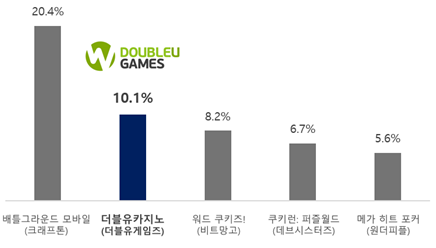 [FETV=신동현 기자] 더블유게임즈는 자사의 대표 소셜카지노 게임 '더블유카지노'가 미국 모바일 게임 시장에서 국산 게임 가운데 이용자 수 2위를 기록했다고 23일 밝혔다.