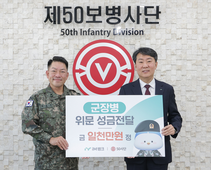 전달된 성금은 군 장병들의 사기 진작과 근무 여건 개선을 위한 복지 지원에 활용될 예정이다. iM뱅크는 그간 지역사회와 함께 성장해 온 금융기관으로서 국가 안보를 지탱하는 군장병들의 헌신이 지역의 안전과 일상으로 이어지고 있다는 점에 주목해 지속적인 관심과 지원을 이어오고 있다.