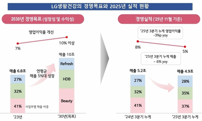 2024년 11월에는 기업가치 제고 계획을 공시하며 2030년에 매출 10조원을 달성하겠다는 목표를 제시했다. 그러나 2025년 3분기 누적 매출은 4조8827억원으로 전년 동기 대비 6.1% 감소했다. 영업이익은 41.4% 감소한 2434억원을 기록했다.