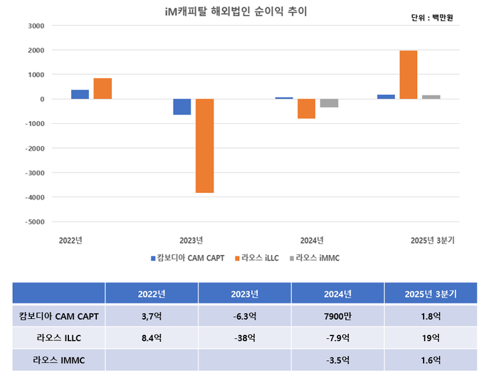 라오스 법인은 2023년과 2024년만 해도 적자를 기록했다. 2023년에는 38억원, 2024년에는 10억원의 손실이 발생했다. 영업 측면에서는 큰 문제가 없었으나 라오스 환율 변동에 따른 환차손이 실적에 영향을 미쳤다. iM캐피탈 관계자는 "지난해는 외화부채 축소에 따른 환차손 방어와 고수익 포트폴리오 전환 효과가 맞물리며 흑자전환에 성공했다"고 설명했다.