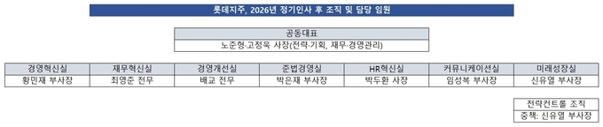 각 사업군과 지주사를 연결하면서 작은 전략실로 불렸던 HQ(헤드쿼터) 조직을 폐지하면서 생긴 변화로 풀이된다. 지주사인 롯데지주는 사업을 진행하는 계열사와 직접적으로 소통하며 의사결정을 내려야 하는 만큼 공동대표 체제를 갖추고 전문성을 기하겠다는 전략이다.