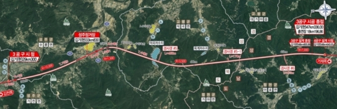 이 중 HDC현대산업개발은 정안건설, 에스씨종합건설과 함께 경북 성주군 가천면 창천리~합천군 야로면 일원에 노반신설 18.196㎞구간을 시공한다. 3공구 공사비 2871억원 중 HDC현대산업개발의 몫은 2297억원이다.