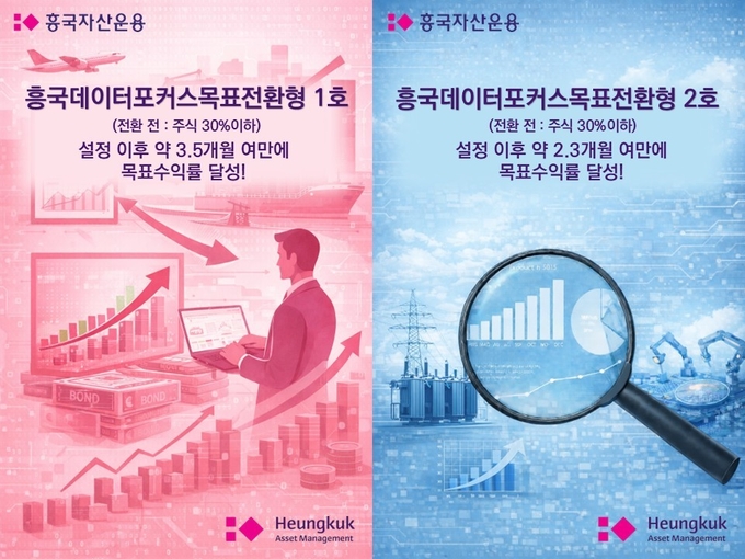 [FETV=이건혁 기자] 흥국자산운용(대표 이두복)은 지난해 하반기 선보인 ‘흥국 데이터포커스 타겟다운 목표전환형 펀드’ 1호와 2호가 최근 목표수익률을 조기에 초과 달성했다고 21일 밝혔다.