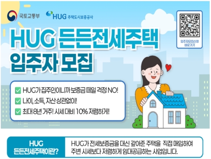 ‘든든전세주택’은 HUG가 전세보증금을 대신 갚아준 주택을 직접 매입해 무주택세대에게 공공임대주택으로 공급하는 사업이다. 임차인은 HUG가 임대인이기 때문에 전세금 미반환에 대한 우려 없이 안심하고 거주할 수 있으며 주변 시세 대비 약 90% 수준의 저렴한 보증금으로 최장 8년간 안정적으로 거주할 수 있다. 2024년부터 여덟 차례에 걸쳐 진행된 공고는 최고 경쟁률 4087대 1, 평균 경쟁률 76대 1을 기록하는 등 인기를 끌었다.
