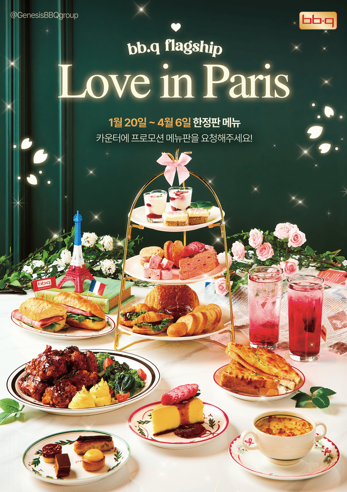 제너시스BBQ 그룹 글로벌브랜딩전략실 김태희 상무는 “이번 ‘러브 인 파리’ 프로모션은 봄 시즌의 정서를 플래그십 매장 관점에서 확장한 리브랜딩 프로젝트”라며 “치킨이라는 본업의 정체성을 유지하면서도, 파리의 문화와 감성을 공간과 메뉴 전반에 조화롭게 담아냈다”고 말했다. 이어 “단순한 식사를 넘어 머무르는 시간 자체가 하나의 경험이 되도록 설계한 것이 이번 프로모션의 핵심”이라고 설명했다.