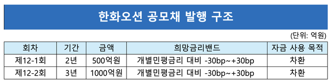조달 자금은 전액 채무상환에 사용될 예정이다. 세부적으로는 기업어음 500억원, 단기사채 800억원, 1.5년물 회사채 200억원 상환에 투입될 전망이다. 한화오션은 수요예측 흥행 시 최대 3000억원까지 증액 발행을 계획하고 있는 가운데 증액 분도 모두 채무상환 자금으로 사용할 예정이다. 수요예측은 이날(3일) 진행 예정이다.