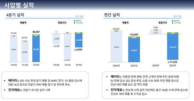 사업 부문별로 보면 수요가 강한 ESS는 미국 현지 라인 가동이 본격화되면서 apc가 증가하고 관세 부담이 줄어들면서 수익성이 크게 개선될 전망이다.