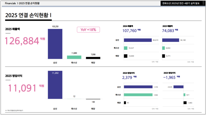 [FETV=이신형 기자] 한화오션이 2025년 매출 12조6884억원, 영업이익 1조1091억원을 기록했다고 4일 밝혔다.