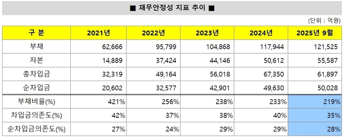 2025년 9월까지는 순차입금이 약 5조원에 이르러 재무 부담이 높은 편이었으나 환경 계열사 및 일부 지분 매각을 통해 대규모 현금이 유입되며 2025년 말 기준 순차입금은 감소세로 전환될 것으로 예상된다. 이에 따라 단기적인 유동성 대응 능력은 일정 수준 확보된 상태다. 다만 개발사업 관련 PF 자금보충 부담과 책임준공 사업 잔액, 단기성 차입 비중이 높은 재무 구조는 지속적인 관리가 필요하다는 지적이다.