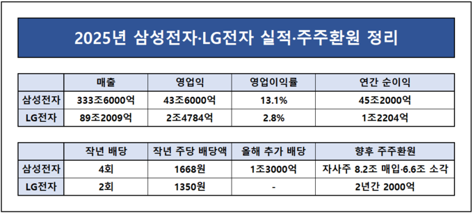 결국 이번 컨퍼런스콜은 국내 대형 전자기업들의 주주환원 전략이 실적과 사업 구조에 따라 이원화되고 있음을 보여준다. 삼성전자가 호실적을 기반으로 배당과 소각을 동시에 확대하는 공격적인 환원 국면에 진입했다면 LG전자는 외형 성장에도 불구하고 일부 수익성 악화로 인해 제한된 범위 내에서 계획형 환원을 유지하고 있다. 실적이 곧바로 주주환원 강도로 연결되는 국면에서 양사의 선택이 뚜렷하게 갈린 셈이다.