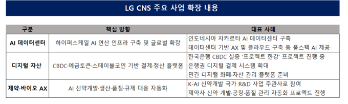 이와 함께 LG CNS는 디지털 자산 인프라 구축과 제약·바이오 부문의 AX 확장도 추진하고 있다